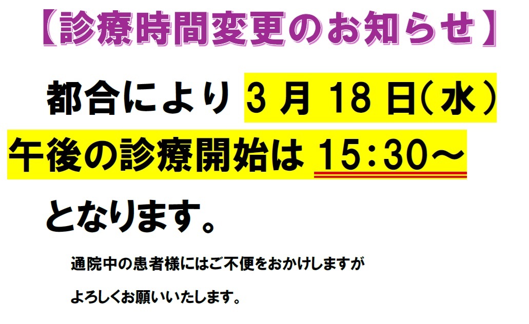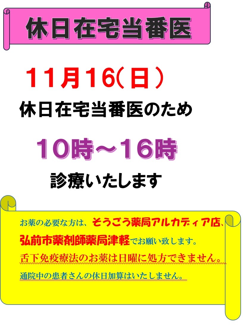 ※日曜・祝日も10:00~12:00まで診療している時あり。TELにて確認を。